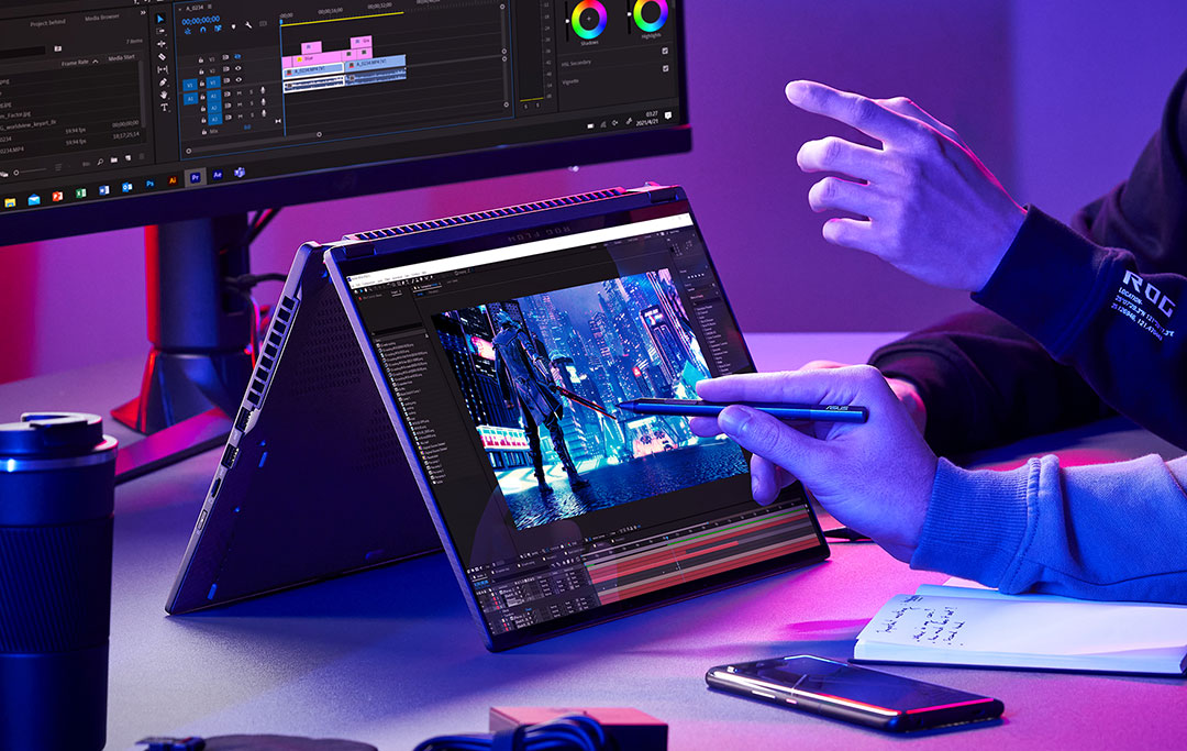 ROG-Flow-X16-in-Tent-mode-with-a-second-display_stylus-_-touchscreen-usage